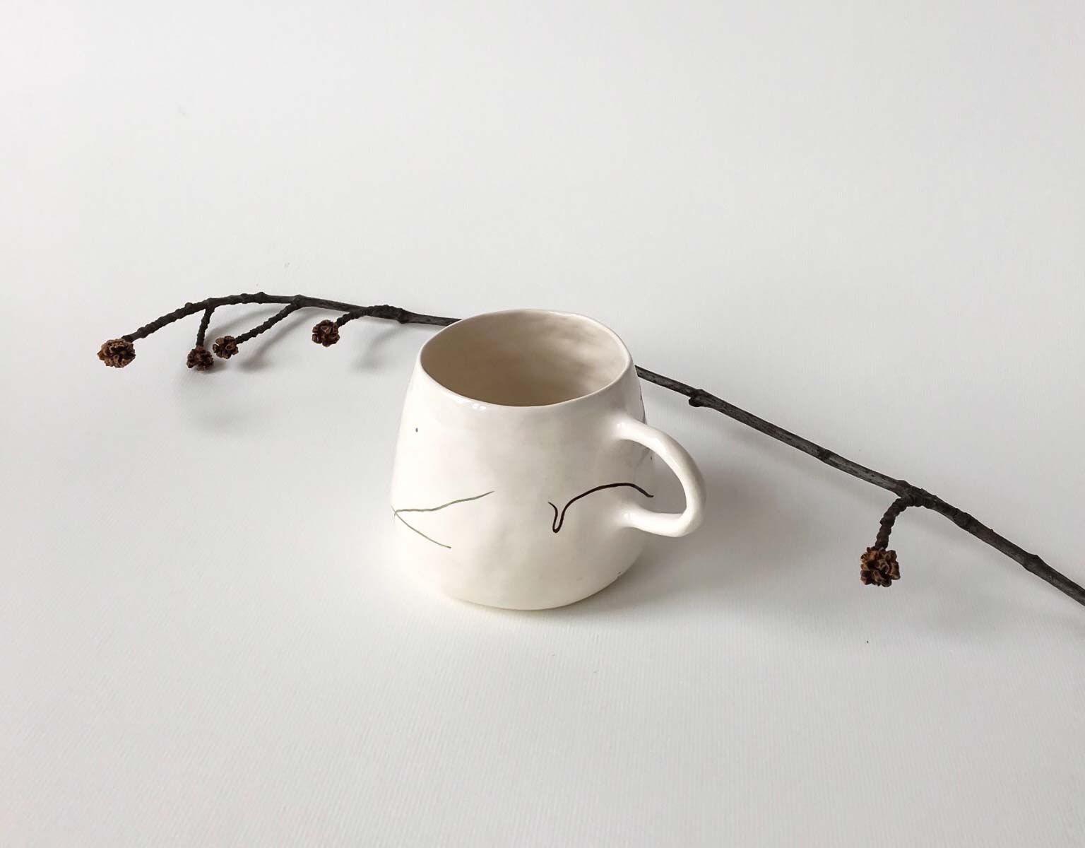 Чашка с абстрактным рисунком, вылеплена вручную из фаянса и декорирована подглазурной росписью. Изделие можно мыть в посудомоечной машине и разогревать в микроволновой печи.