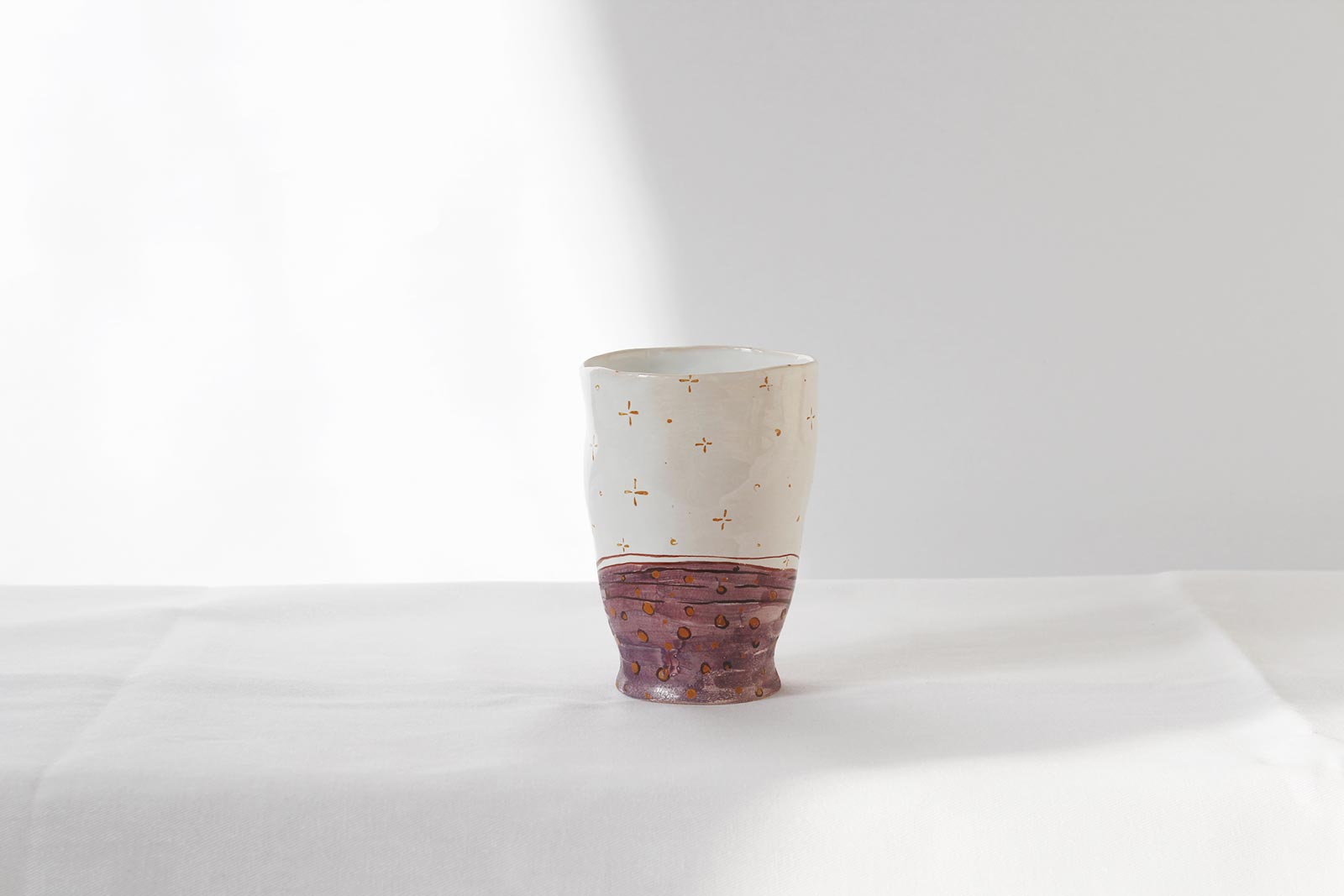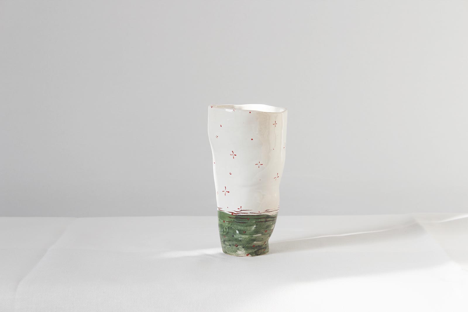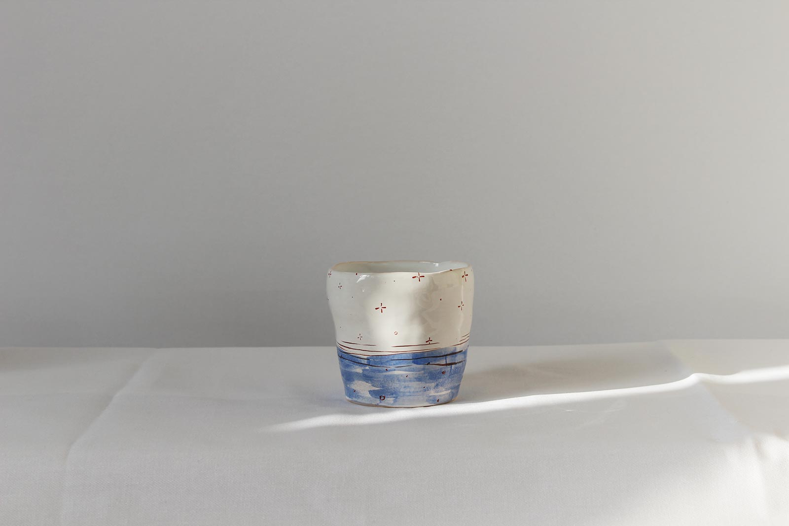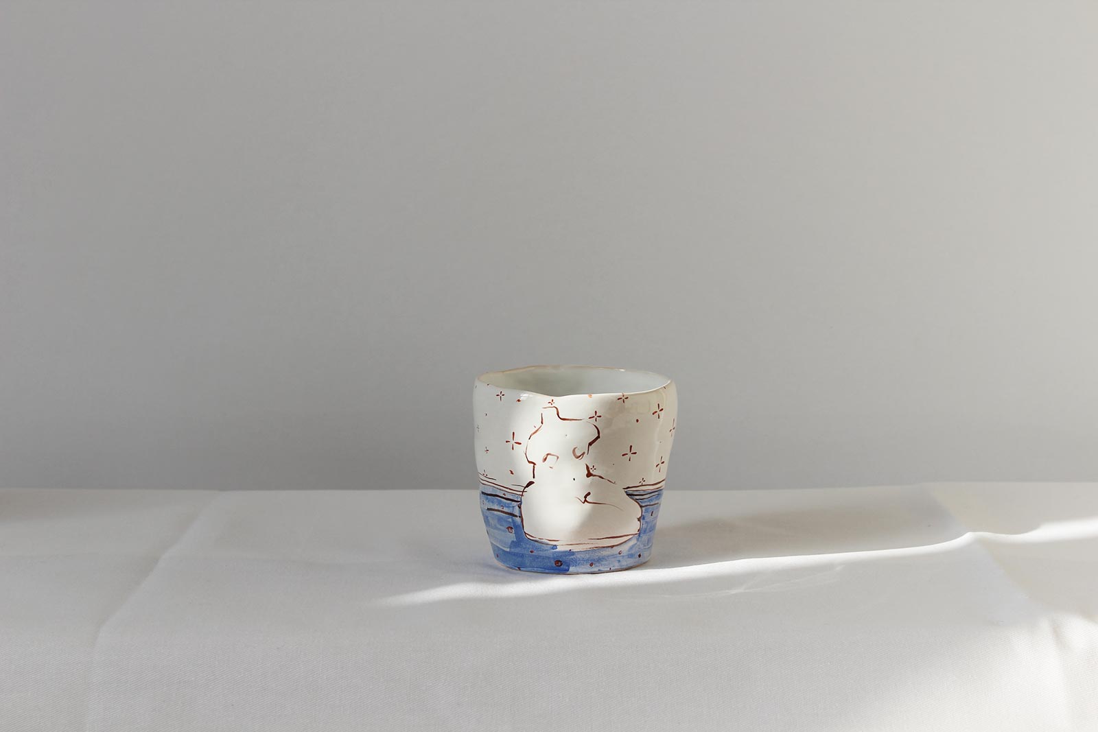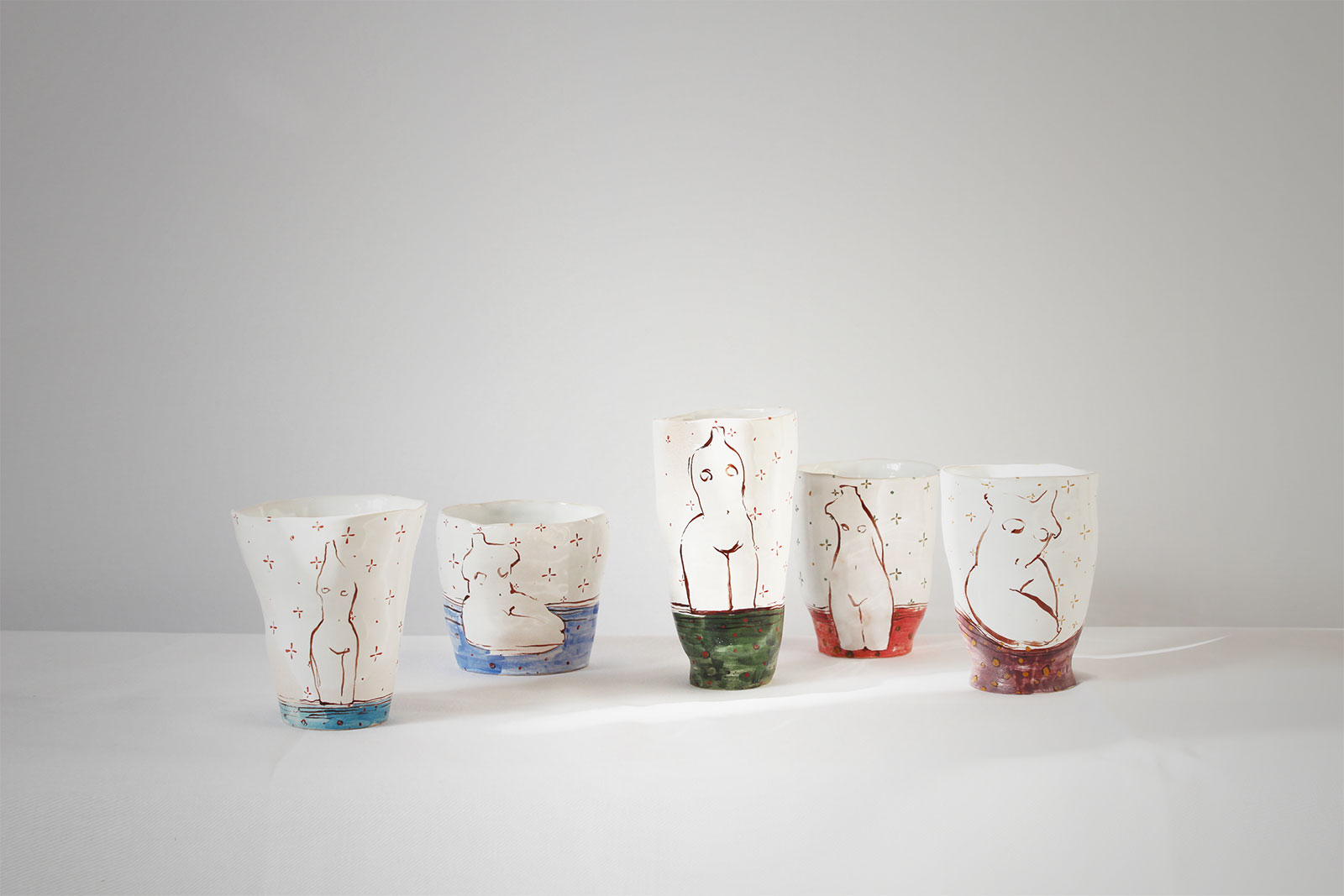 Ceramic glasses from the series “Naked“, made by hand from white clay and decorated with underglaze painting. Can be used for both cold and hot drinks. Glasses can be washed in a dishwasher and heated in a microwave oven.