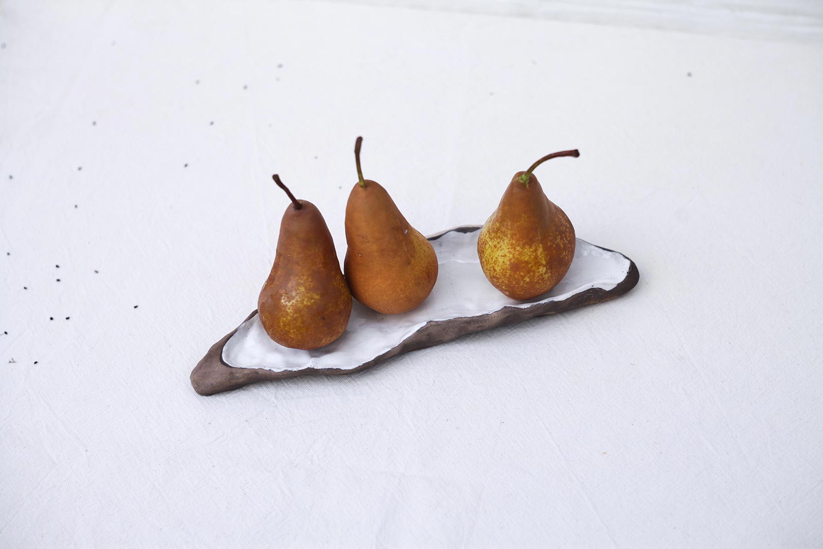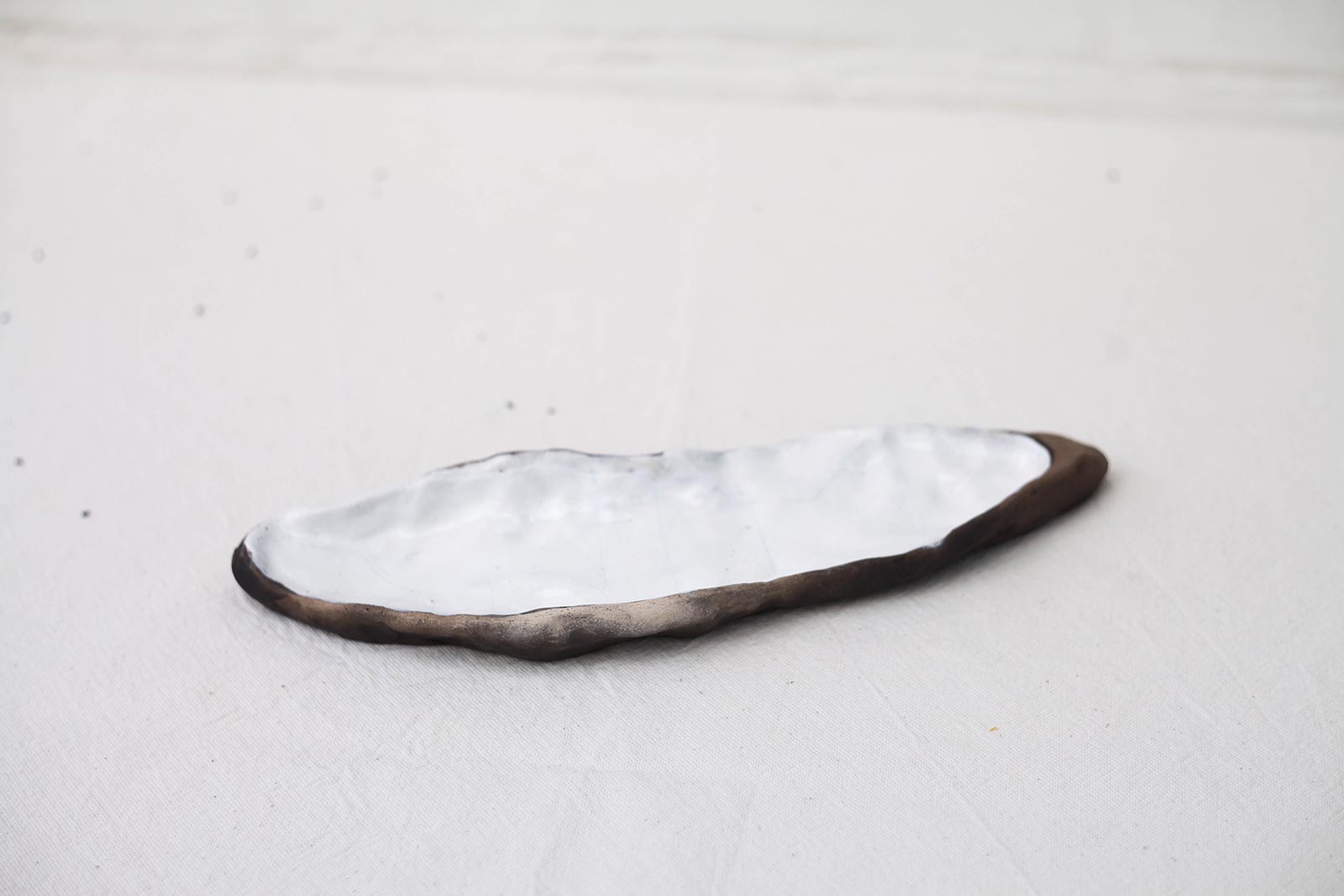 Plate from series “Work on yourself“. Made by hand from chamotte clay and decorated enamels and smoke. Will become a good decoration of the interior or a great dish for cold snacks. Wares can be warmed up in a microwave oven, used for cold and hot dishes. Can not be washed in a dishwasher.