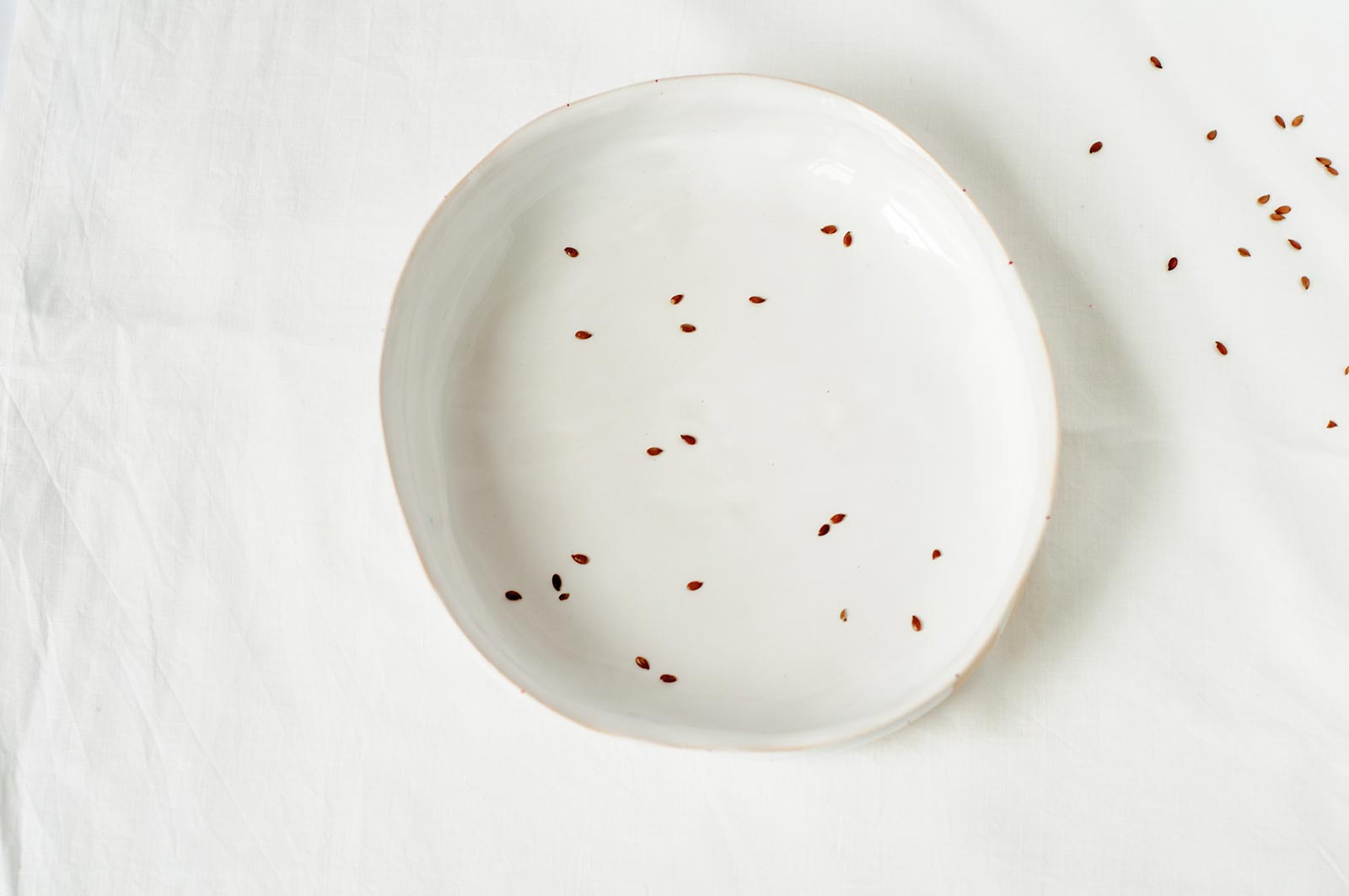 Deep ceramic plates for food from collection “Flowers with milk“. Made by hand from white clay and decorated with underglaze painting. Can be used as a plate for salads or side dishes. The products can be washed in a dishwasher and heated in a microwave oven.