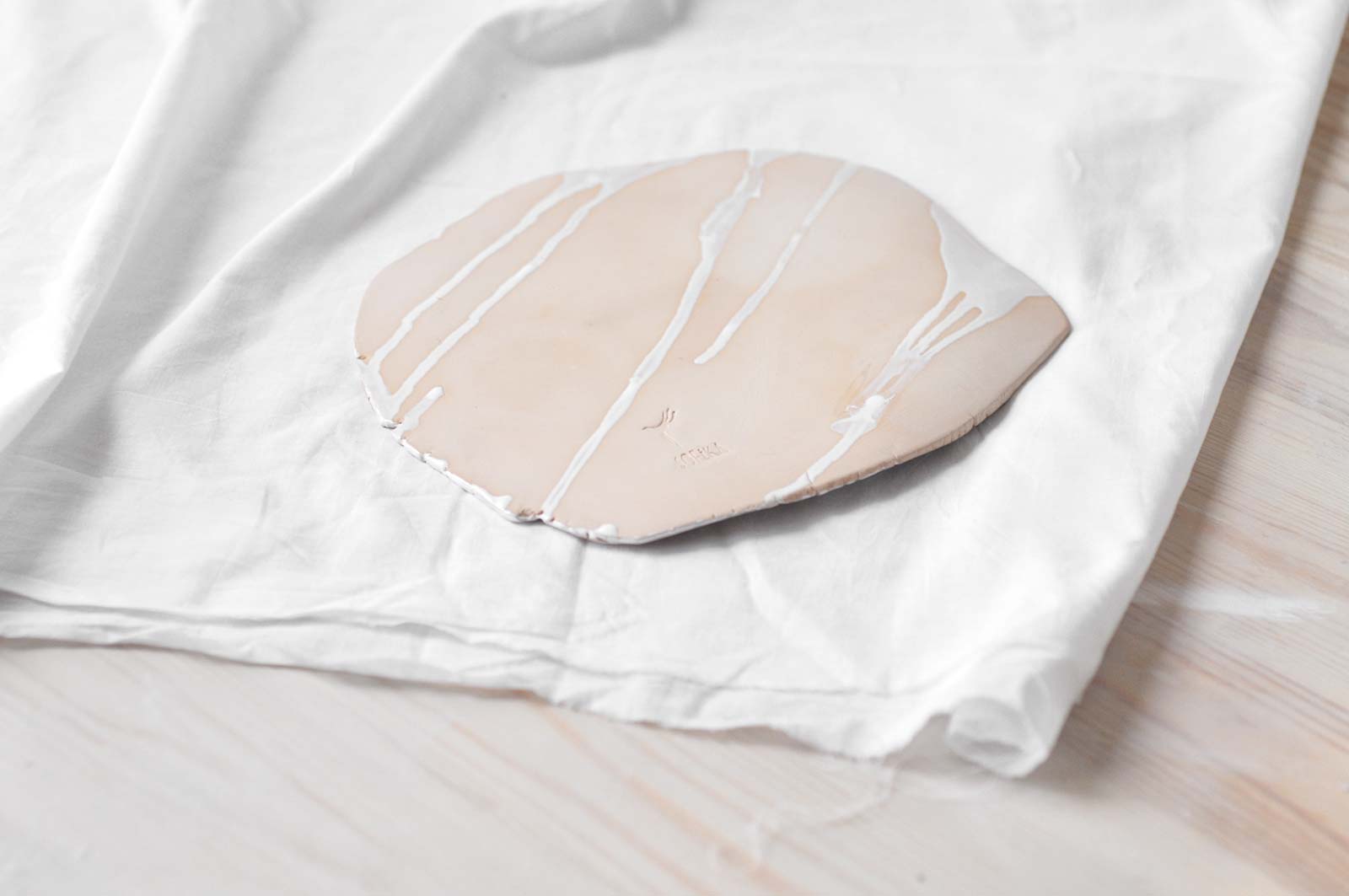 Flat plate from the series “Dance“, made by hand from white clay and decorated with underglaze painting. Will become a good decoration of the interior. Wares can be washed in a dishwasher and heated in a microwave oven.
