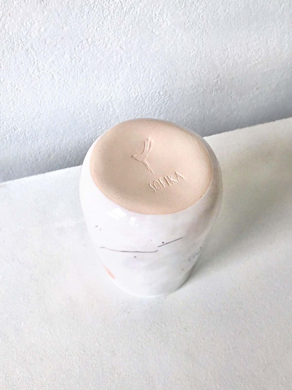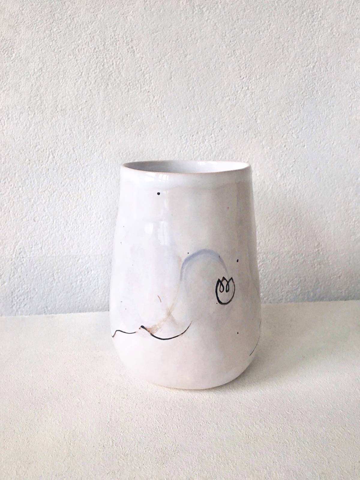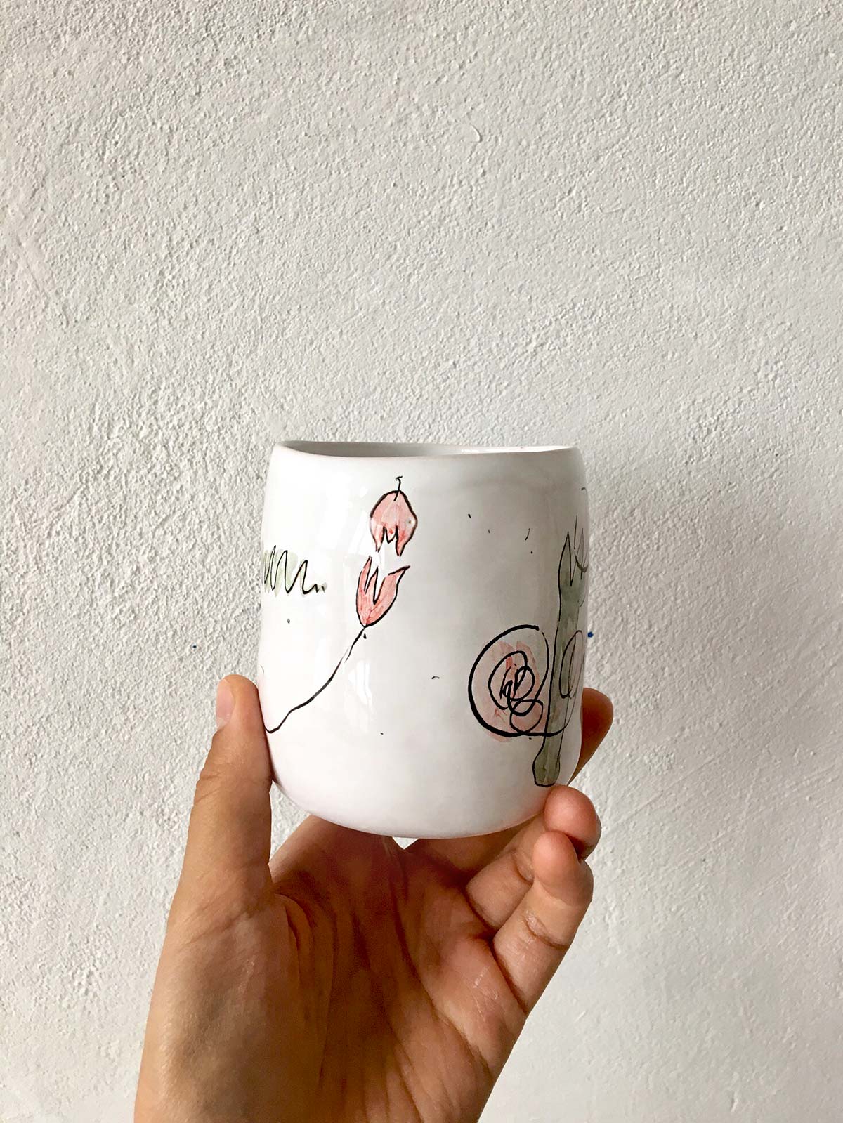 Ceramic glasses from collection “About Summer”. Wares made by hand from white clay and decorated with underglaze painting. Glasses can be washed in a dishwasher and heated in a microwave oven.