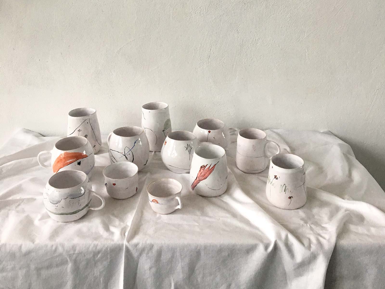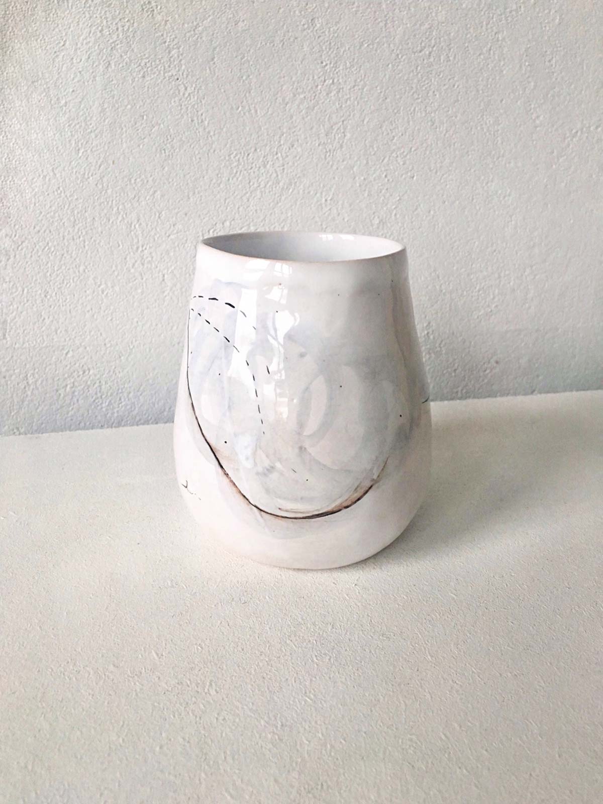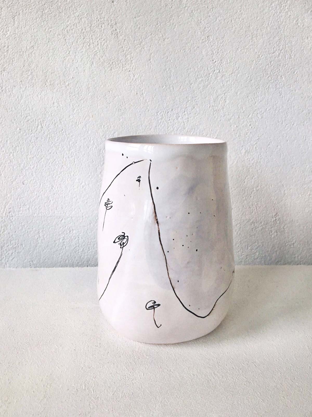 Ceramic glasses from collection “About Summer”. Wares made by hand from white clay and decorated with underglaze painting. Glasses can be washed in a dishwasher and heated in a microwave oven.