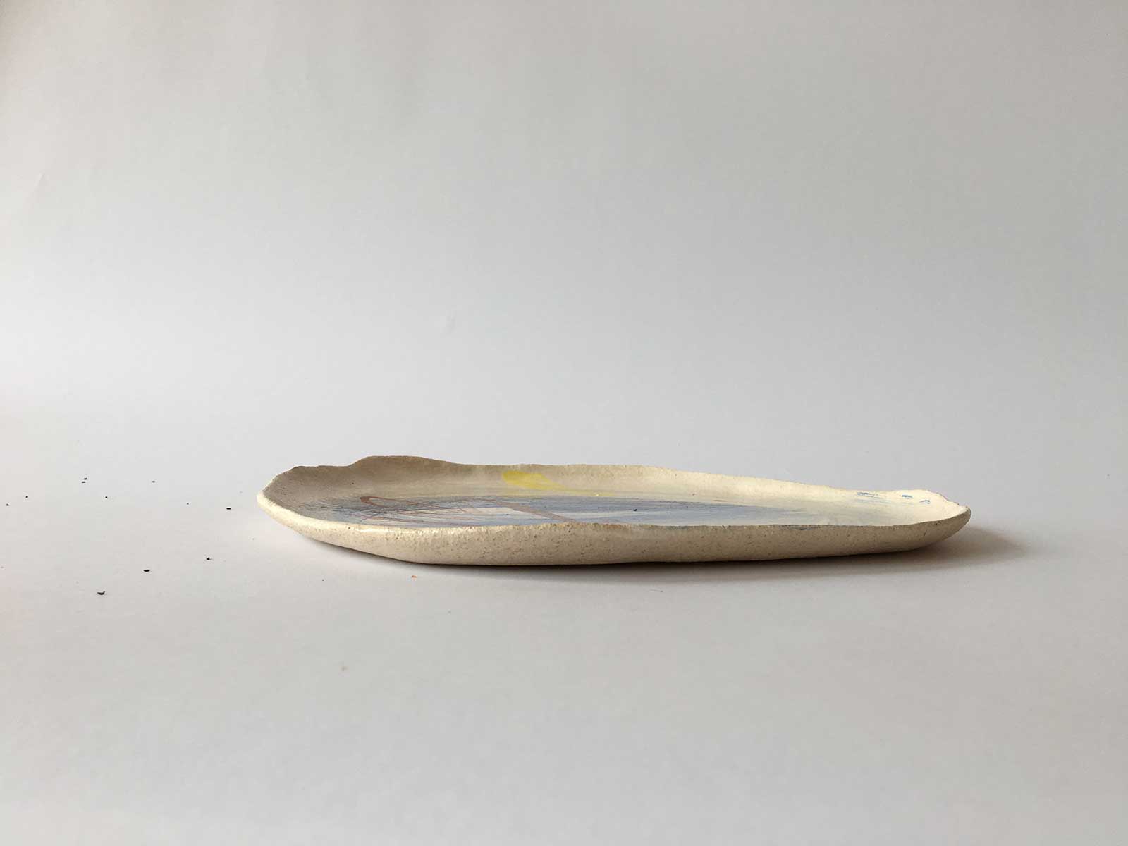 Large plate from ceramics. Made by hand from chamotte clay and decorated engobed painting. Can be used as a plate for food or as an independent decoration. Wares can be washed in a dishwasher and heated in a microwave oven.