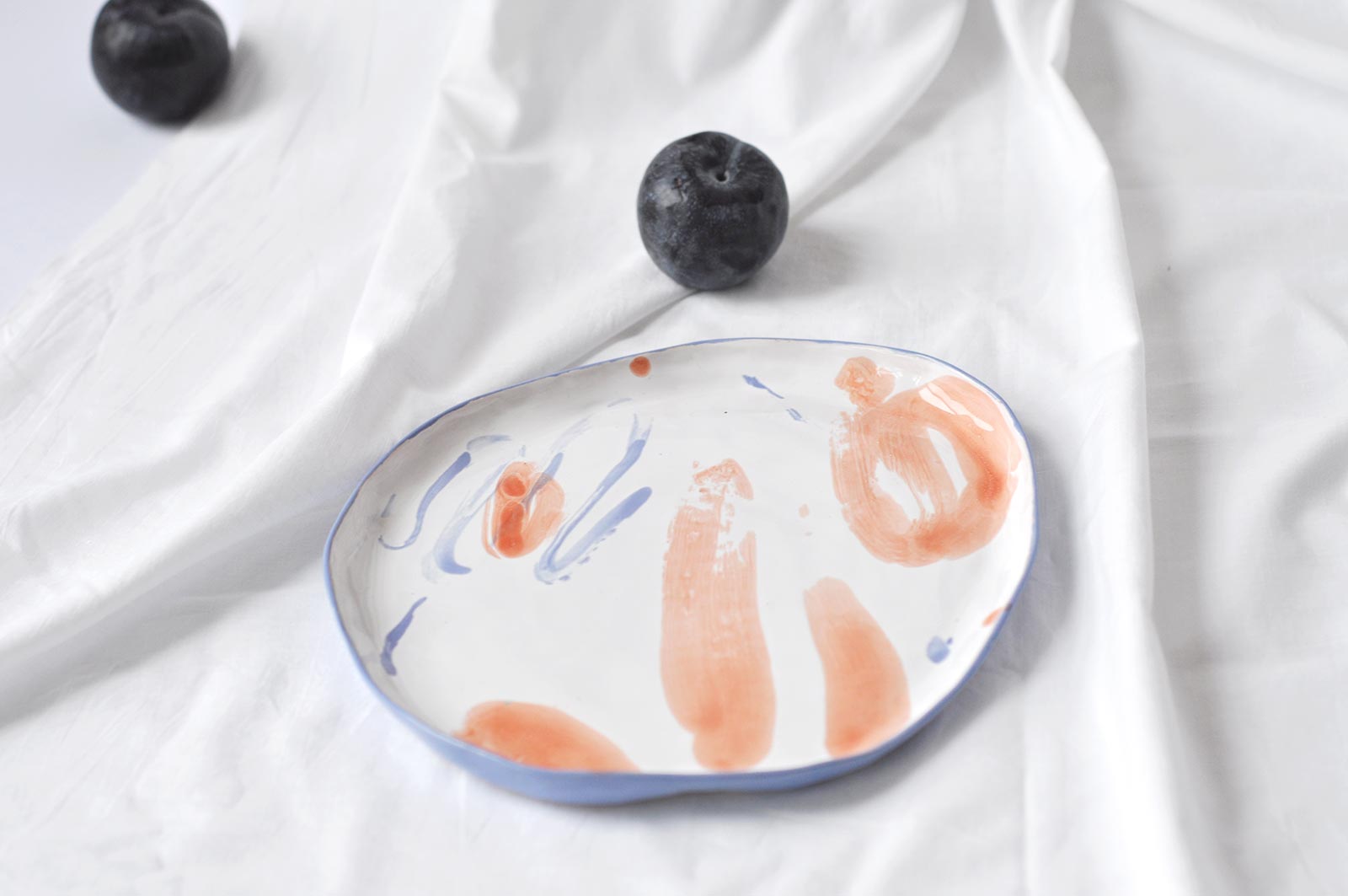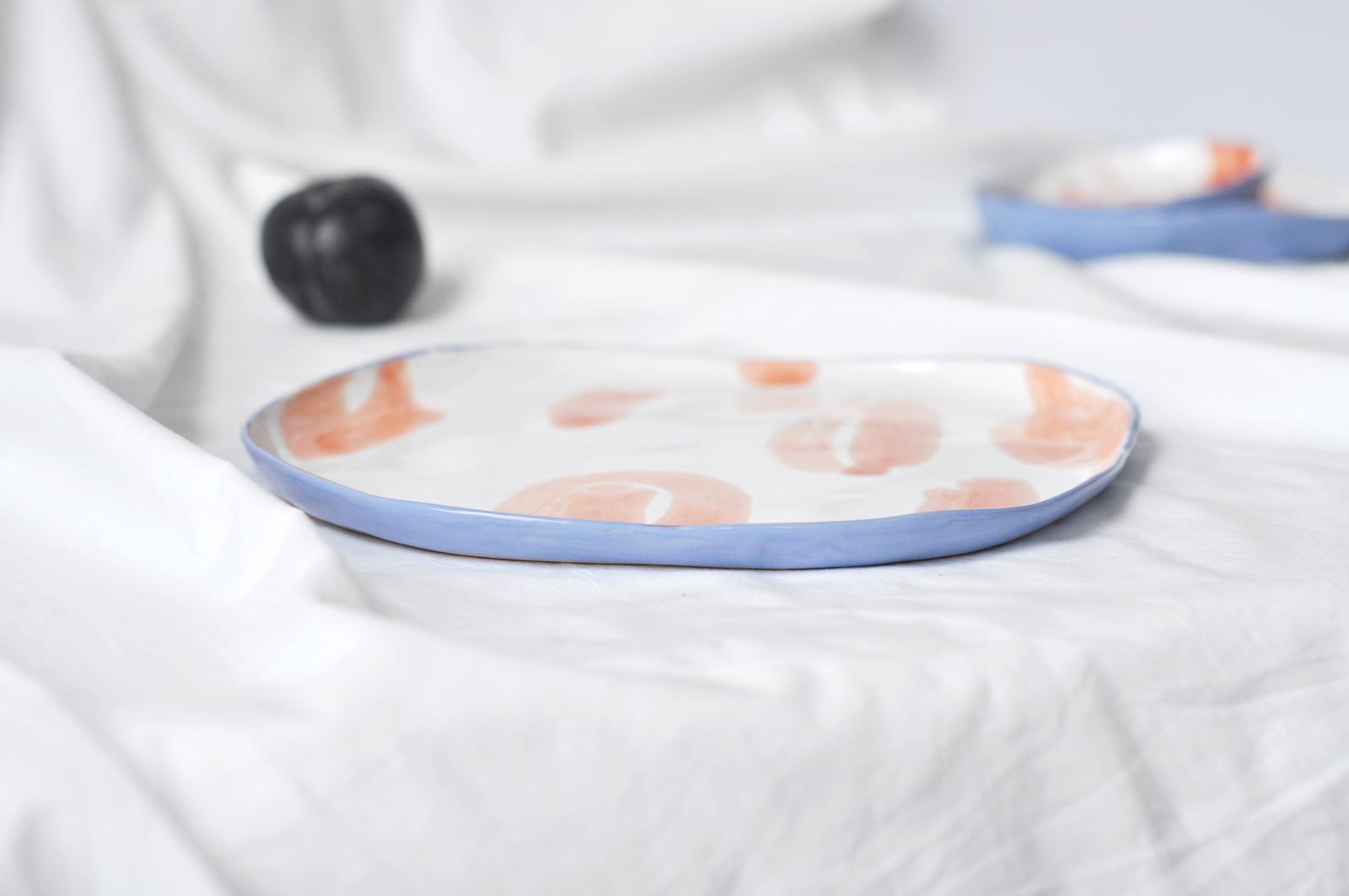 Flat ceramic plates from the series “Oranges“. Made by hand from white clay. Can be used as a plate for dishes from garnish and snacks or as an independent decor for interior decoration. The products can be washed in a dishwasher and heated in a microwave oven.