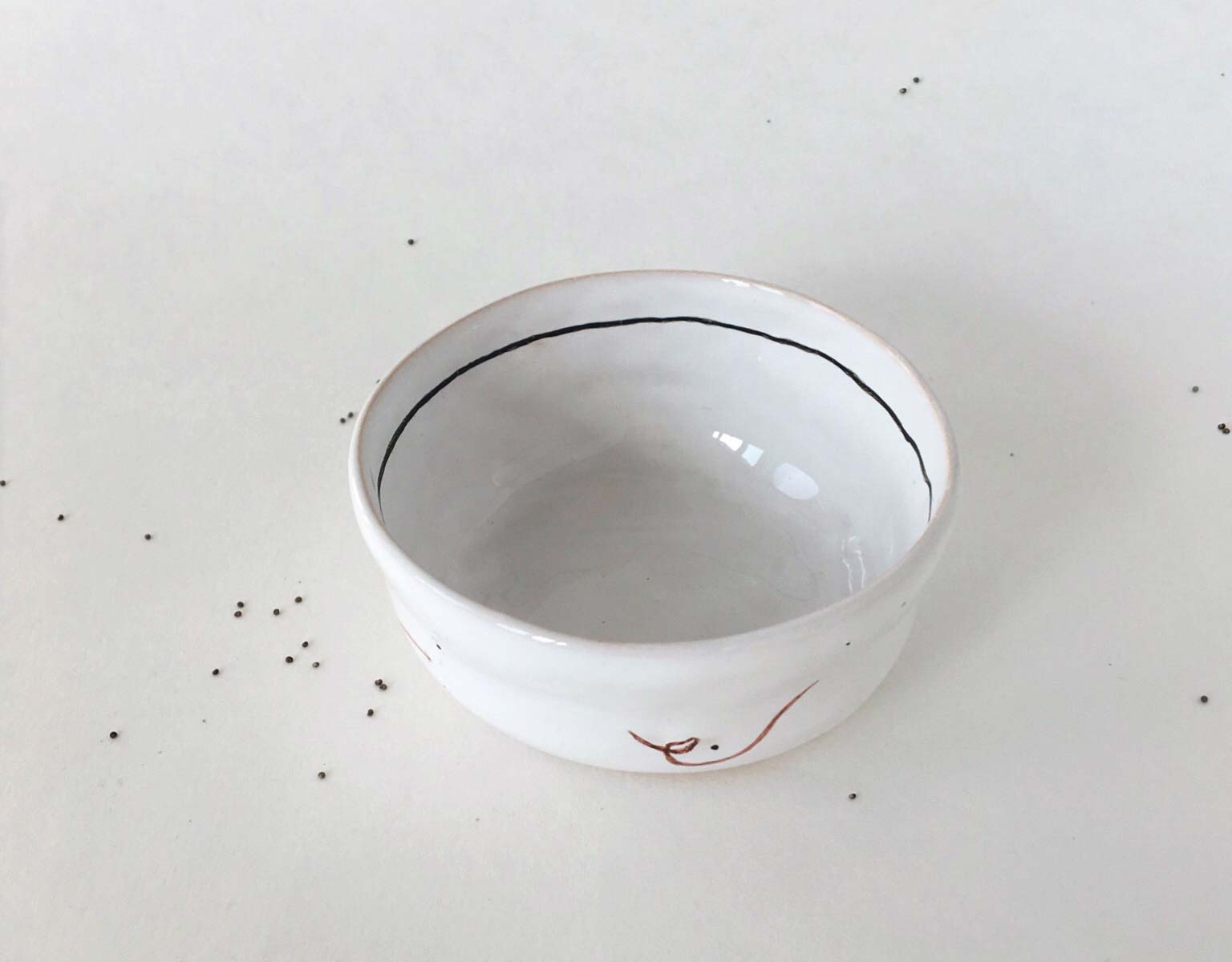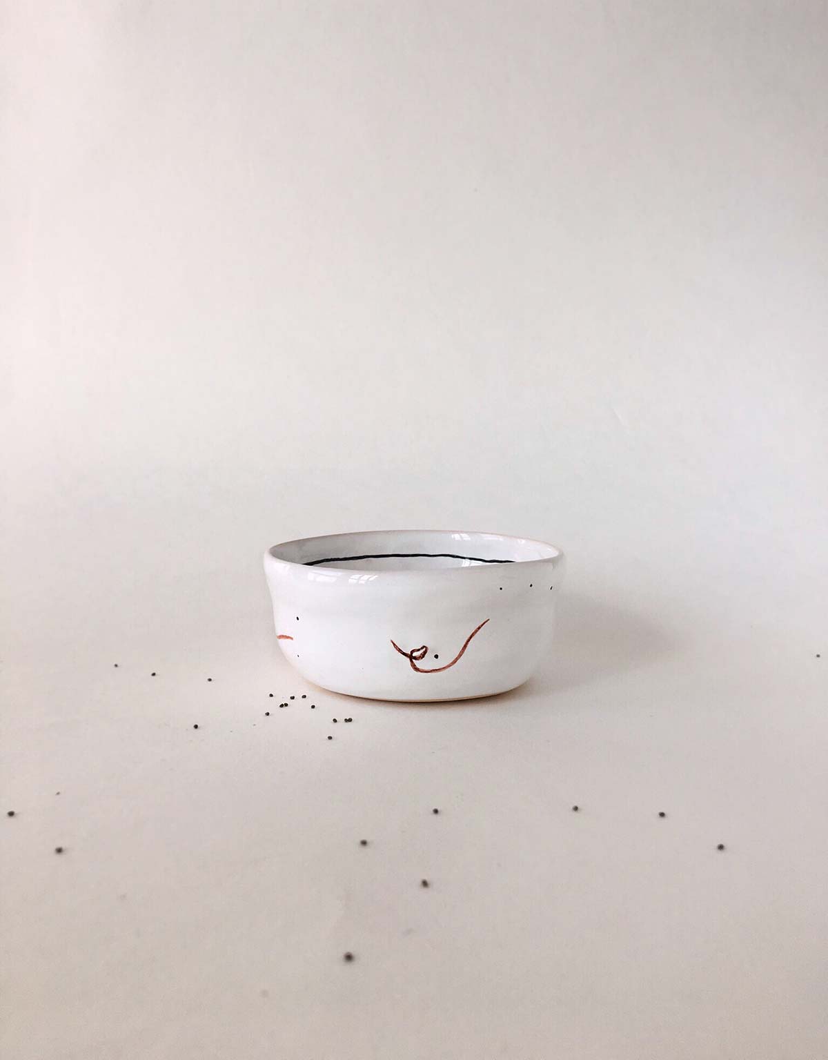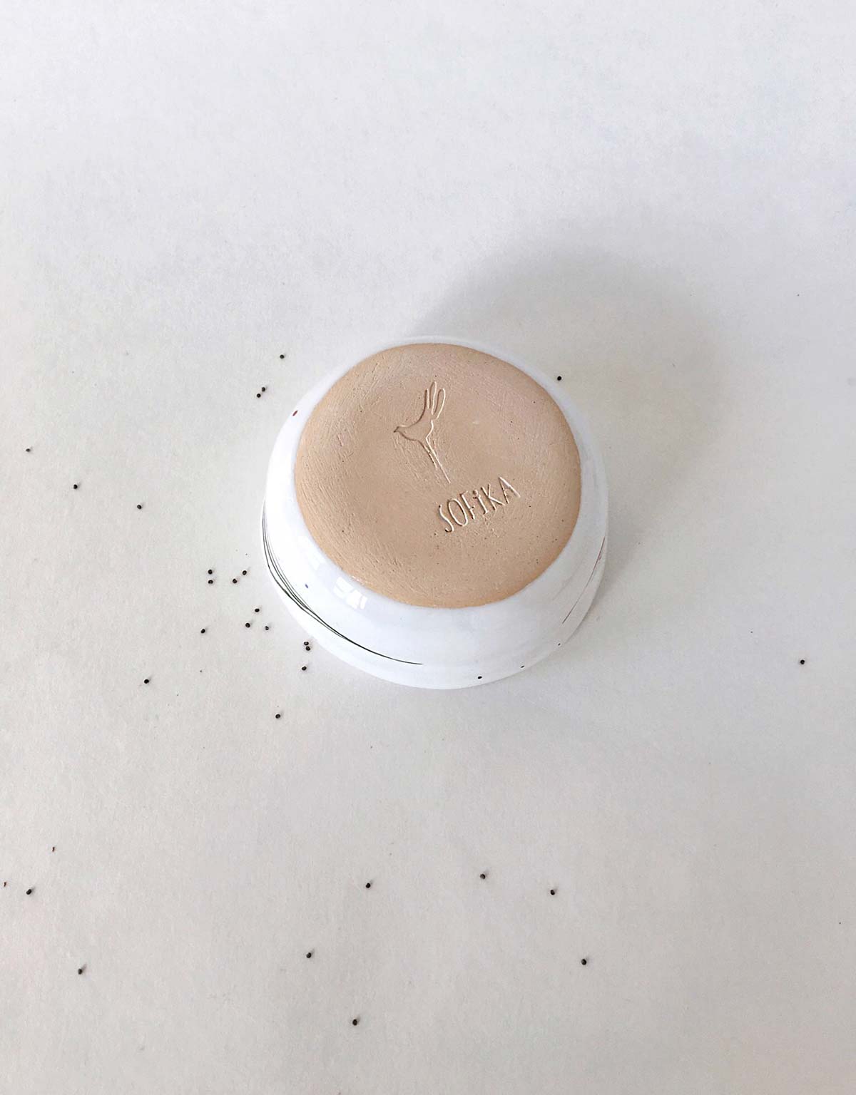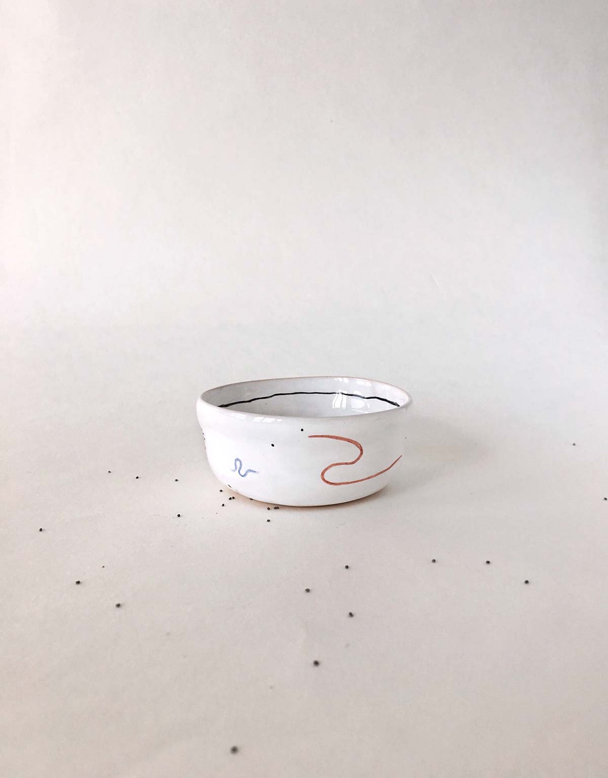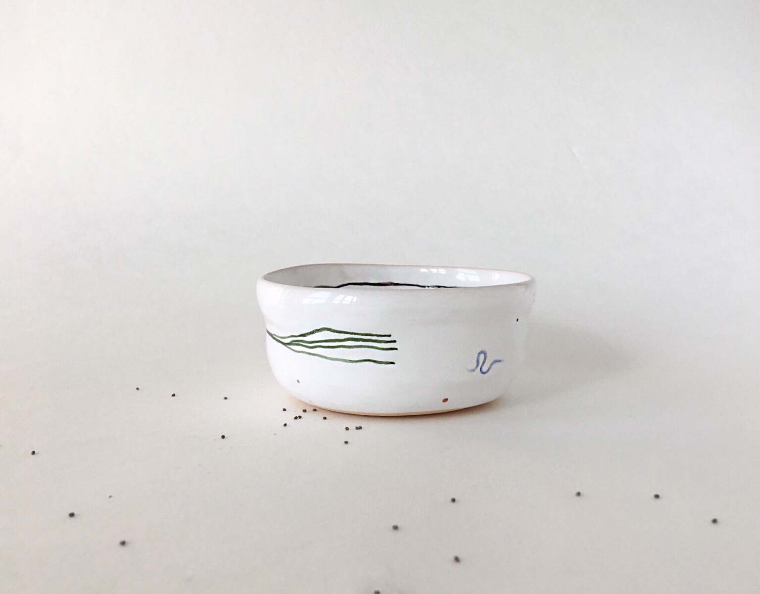 Set plates with abstract drawing, consists from flat, deep plates and pialas. All wares made by hand from white clay and decorated with underglaze painting. The products can be washed in a dishwasher and heated in a microwave oven.