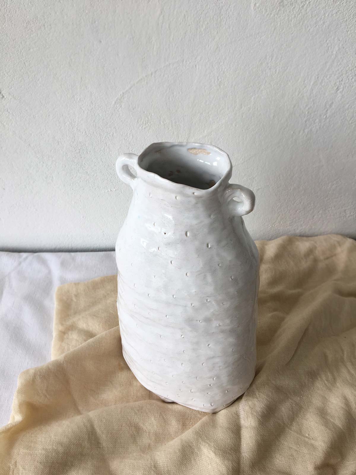 Vase”Kiss”, made by hand from chamotte clay and decorated with relief. Can be used as an independent decor for decorating the interior or as a vase for flowers.