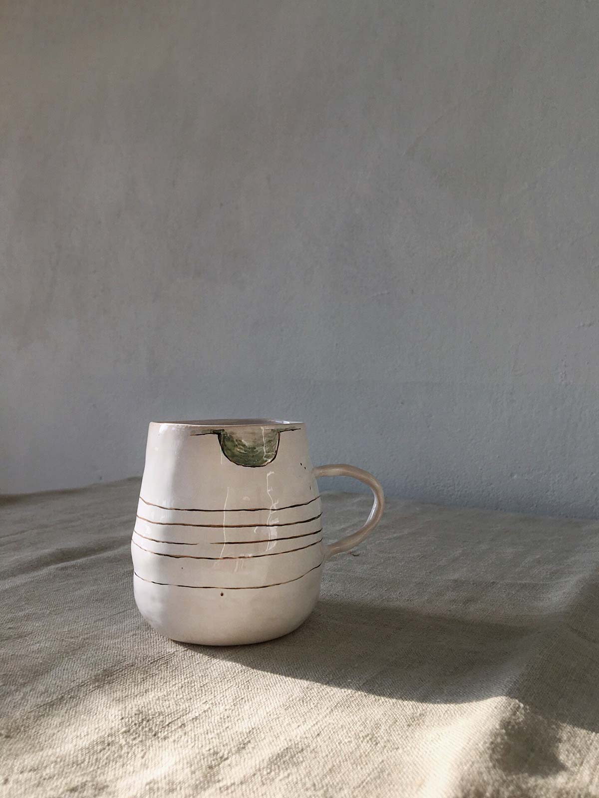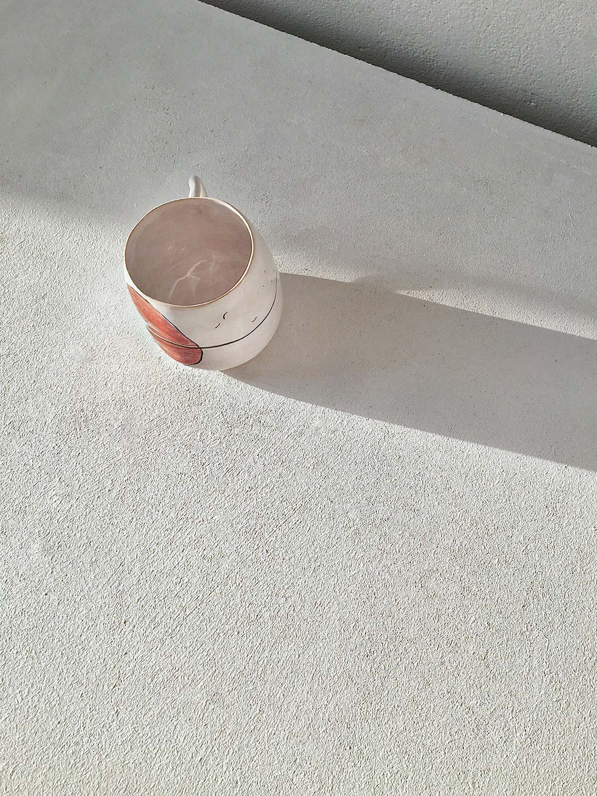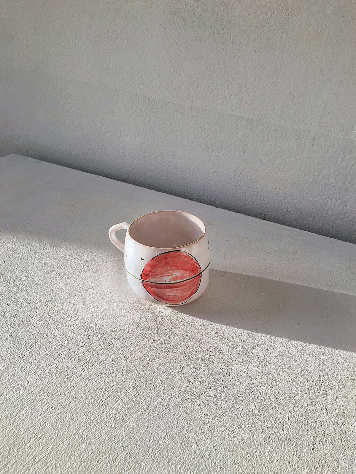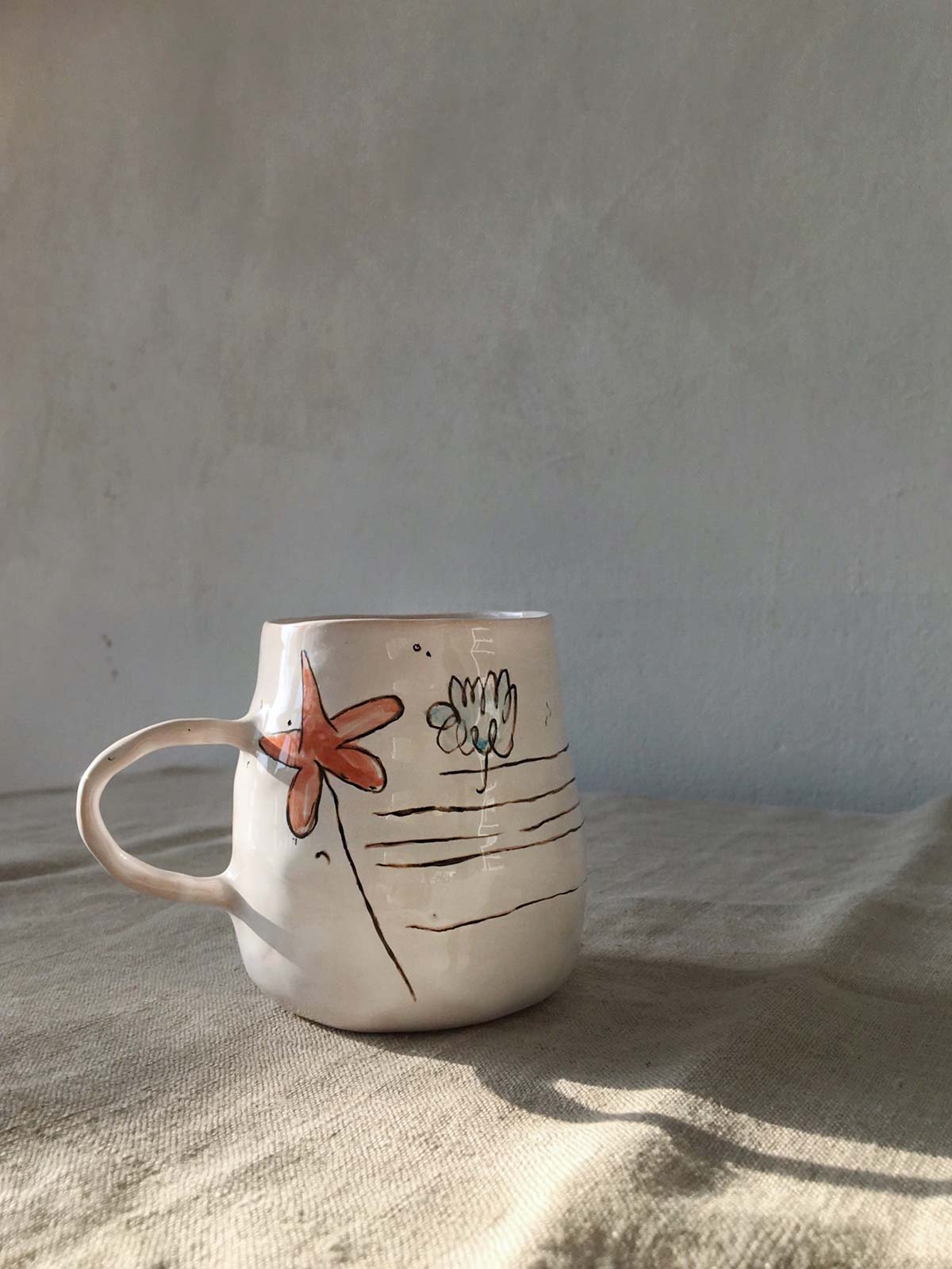 Керамічні чайні та кавові чашки з колекції «Про літо». Вироби виліплені вручну з білої глини і декоровані підглазурним розписом. Чашки можна мити в посудомийній машині і розігрівати в мікрохвильовій печі.