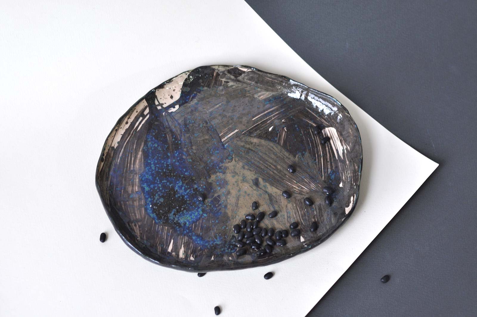 Тарілка з бортиком «Тиха безодня». Виліплена вручну з білої глини. Стане гарною прикрасою інтер’єру або чудовою тарілкою для страв з гарніром. Виріб можна мити в посудомийній машині і розігрівати в мікрохвильовій печі.