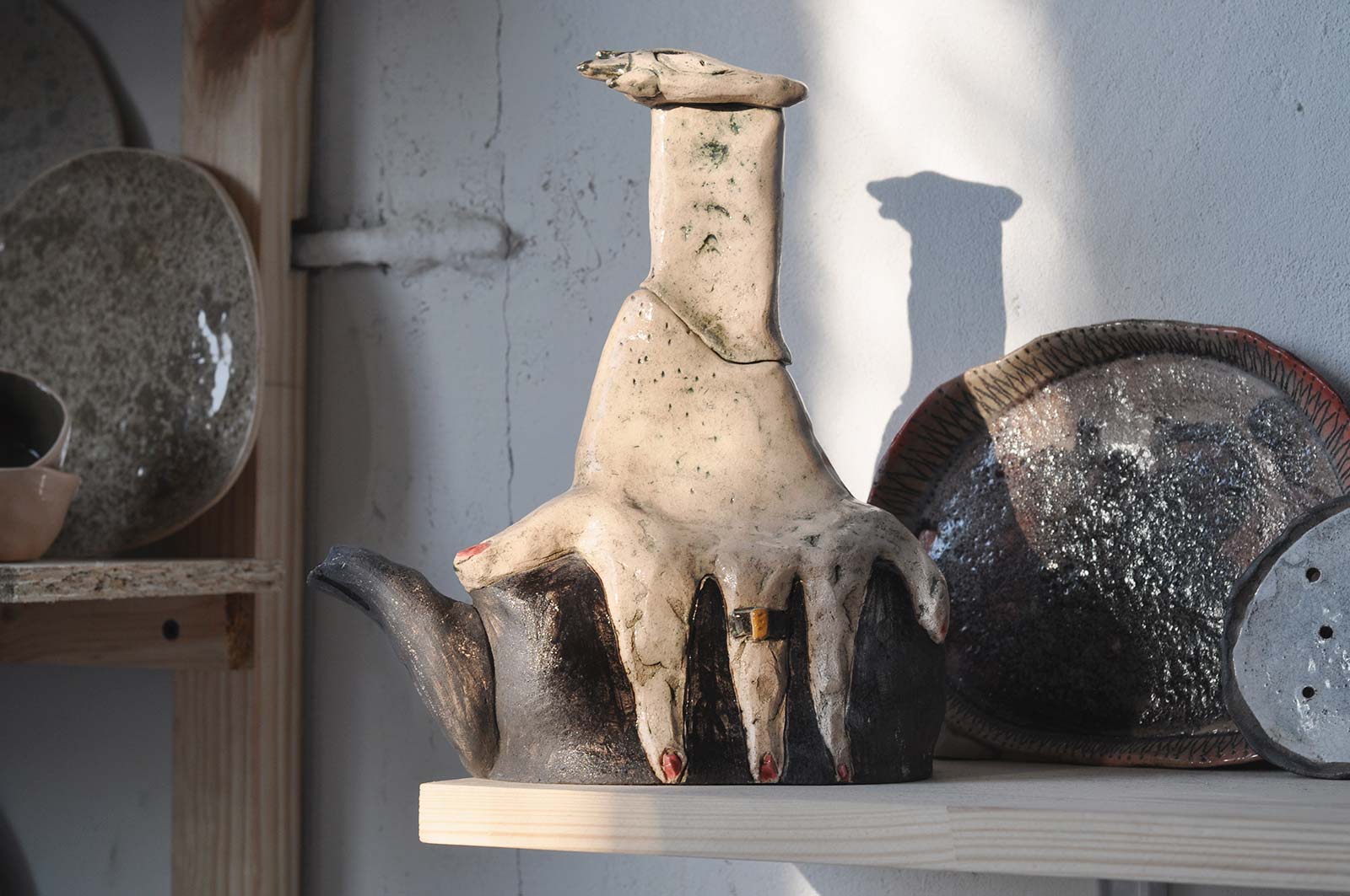 Декоративний чайник із серії «Присутність». Виліплений вручну з шамотної глини.