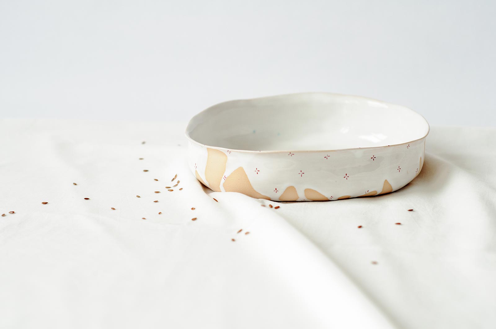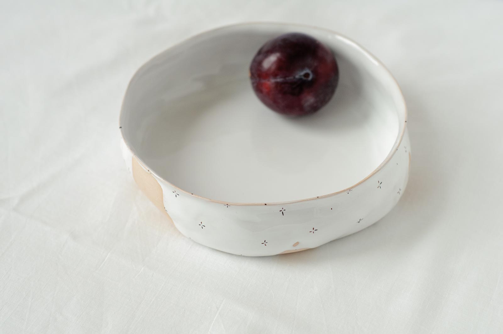 Глибокі керамічні тарілки для їжі з колекції «Квіти з молоком». Виліплені вручну з білої глини і декоровані підглазурним розписом. Можна використовувати як тарілку для салатів або гарнірів. Вироби можна мити в посудомийній машині і розігрівати в мікрохвильовій печі.