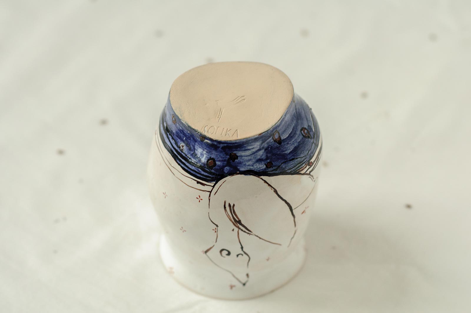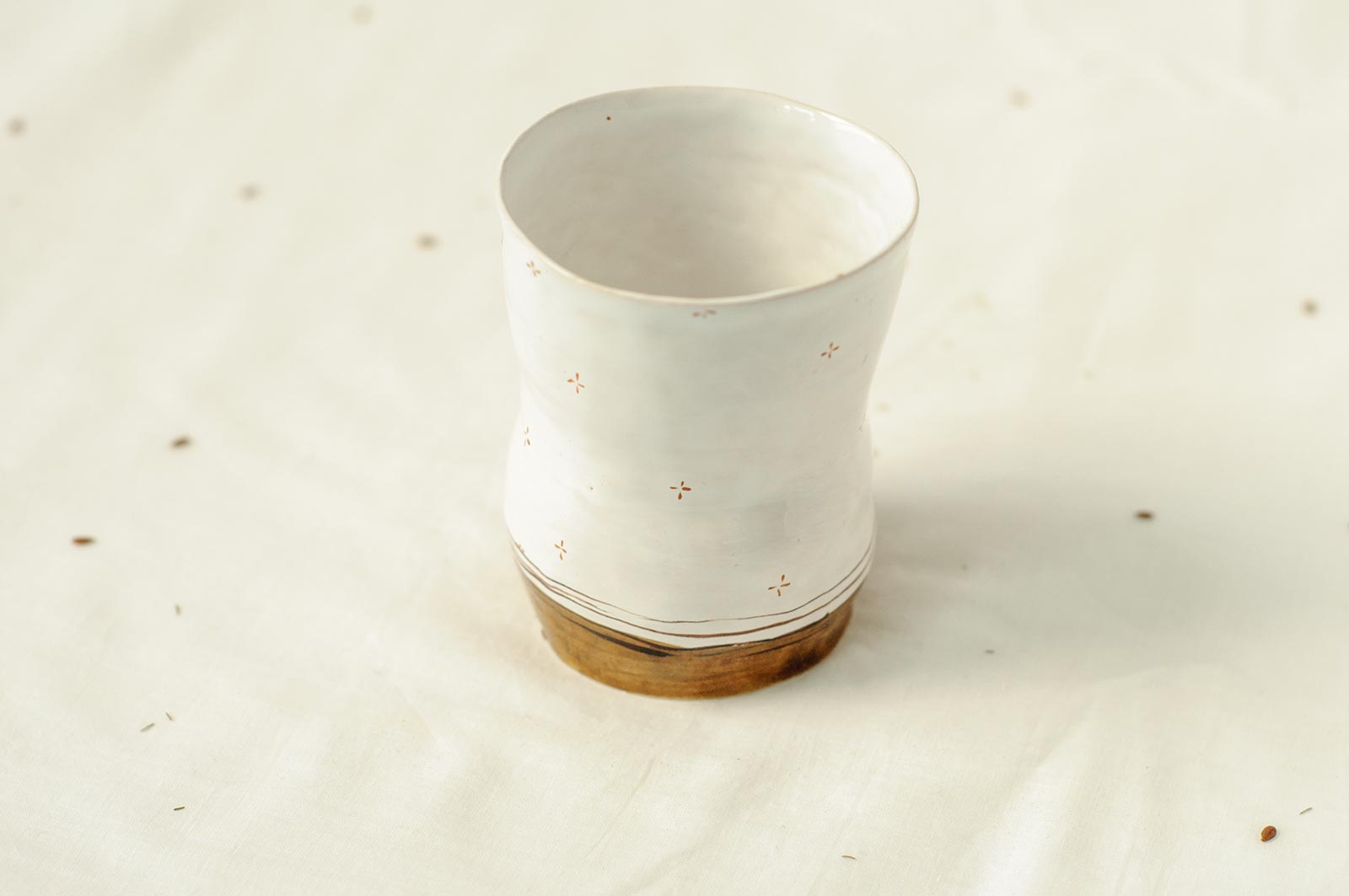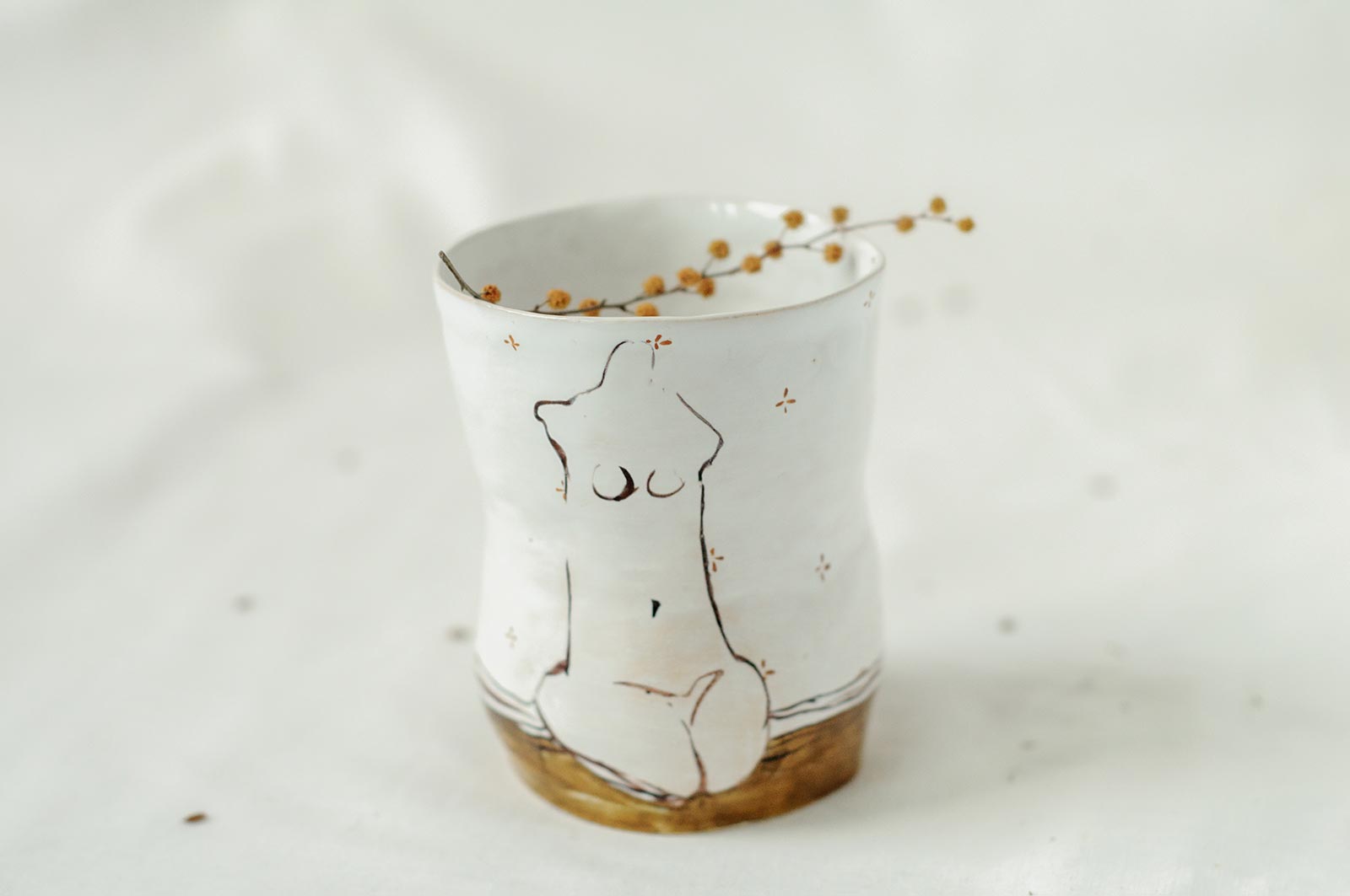 Керамічні склянки із серії «Оголені». Вироби виліплені вручну з білої глини і декоровані підглазурним розписом. Можна використовувати як для холодних так і для гарячих напоїв. Склянки можна мити в посудомийній машині і розігрівати в мікрохвильовій печі.