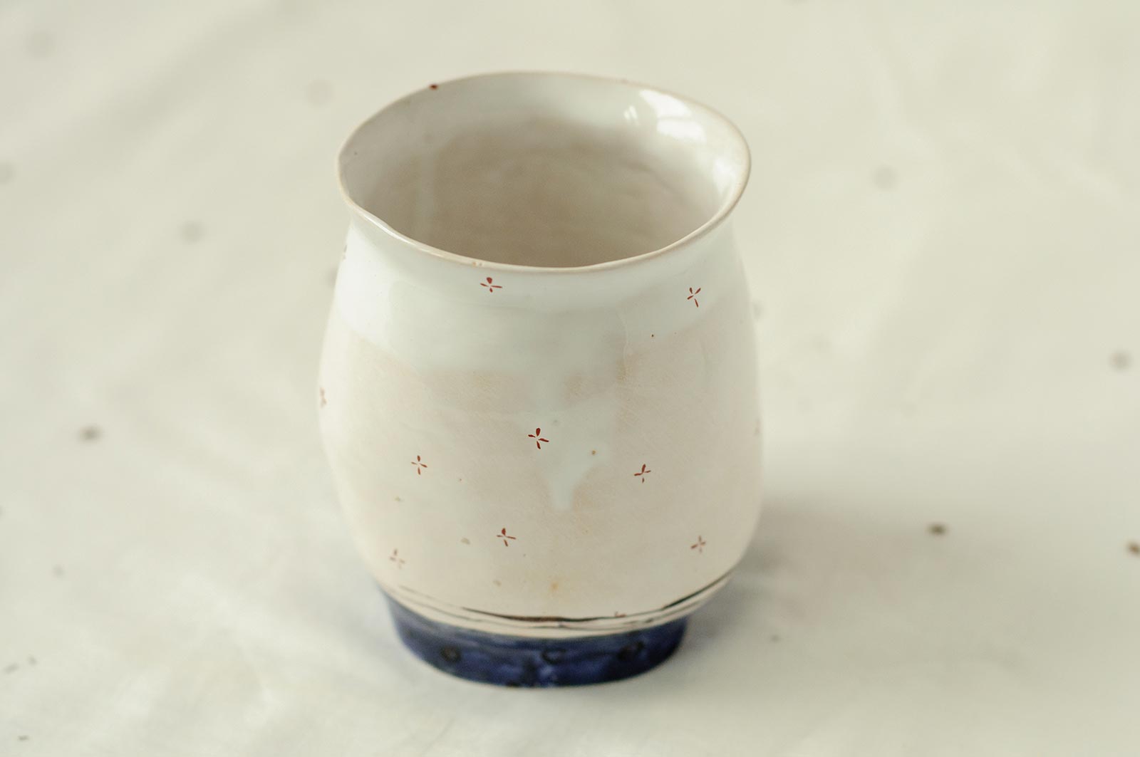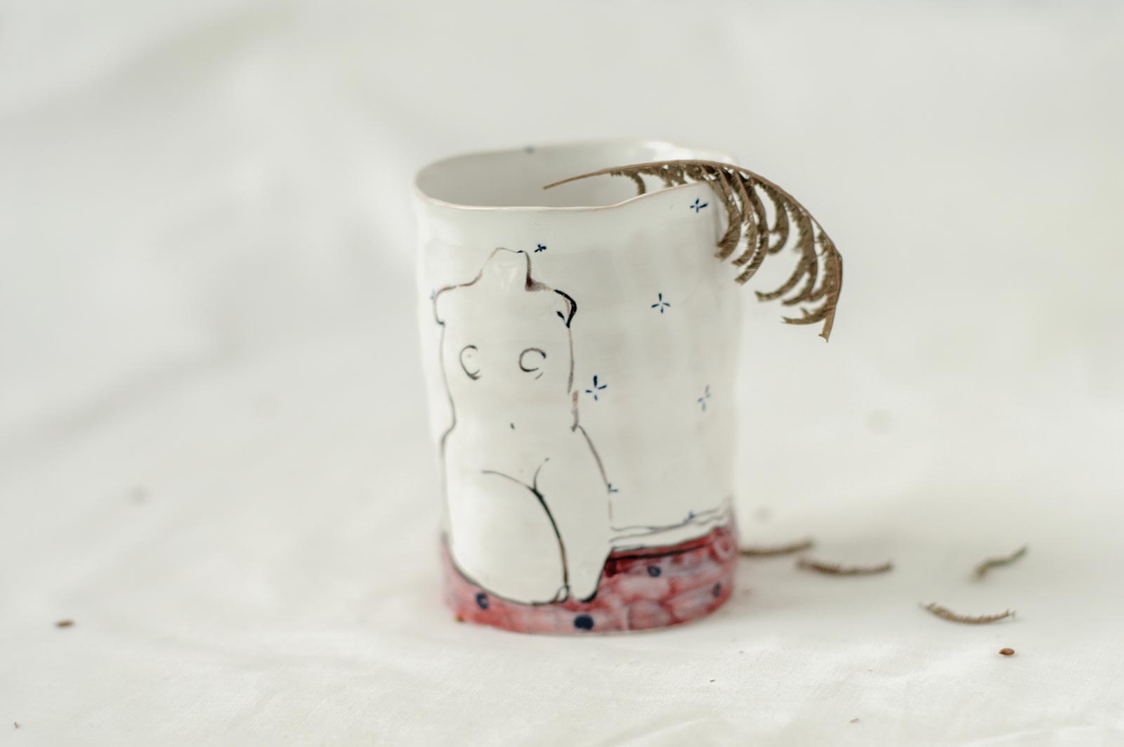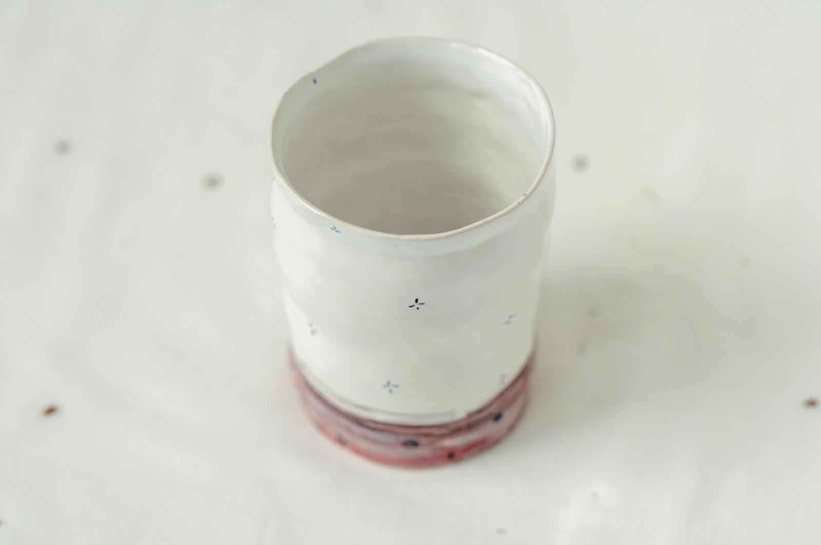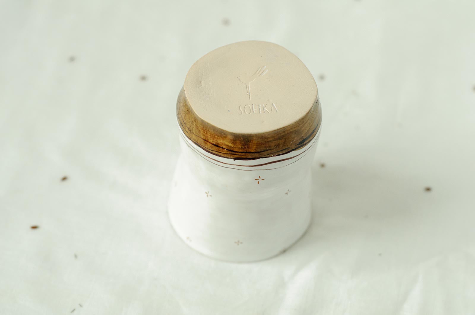Керамічні склянки із серії «Оголені». Вироби виліплені вручну з білої глини і декоровані підглазурним розписом. Можна використовувати як для холодних так і для гарячих напоїв. Склянки можна мити в посудомийній машині і розігрівати в мікрохвильовій печі.