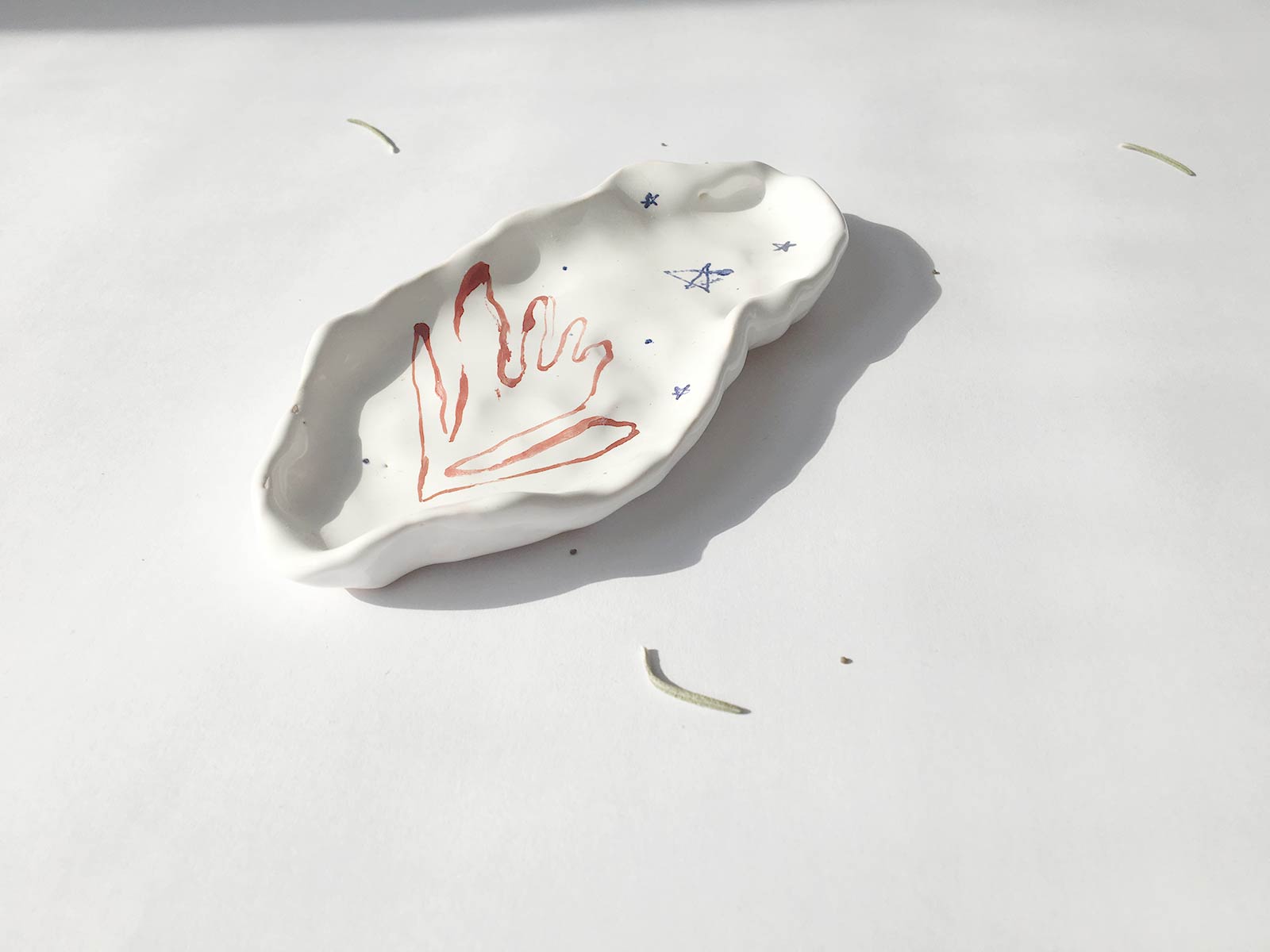 Овальна керамічна тарілка з червоною квіткою. Виліплена вручну з білої глини і декорована підглазурним розписом. Стане гарною прикрасою інтер’єру або чудовою підставкою. Виріб можна мити в посудомийній машині і розігрівати в мікрохвильовій печі.