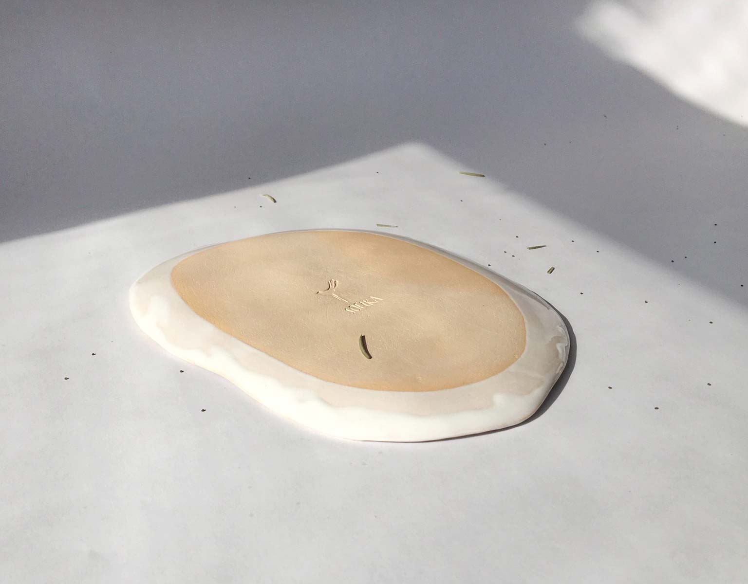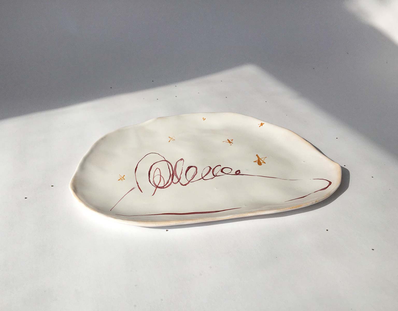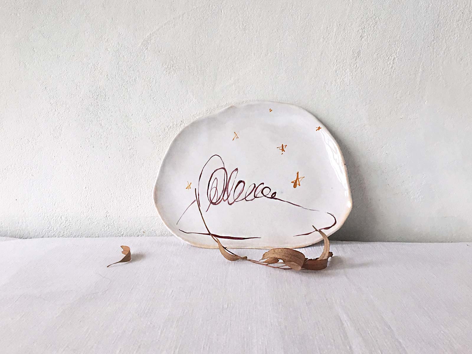 Плоска тарілка «Нічний пейзаж», виліплена вручну з білої глини і декорована підглазурним розписом. Можна використовувати як тарілку для десертів або як самостійний декор для прикраси інтер’єру. Виріб можна мити в посудомийній машині і розігрівати в мікрохвильовій печі.
