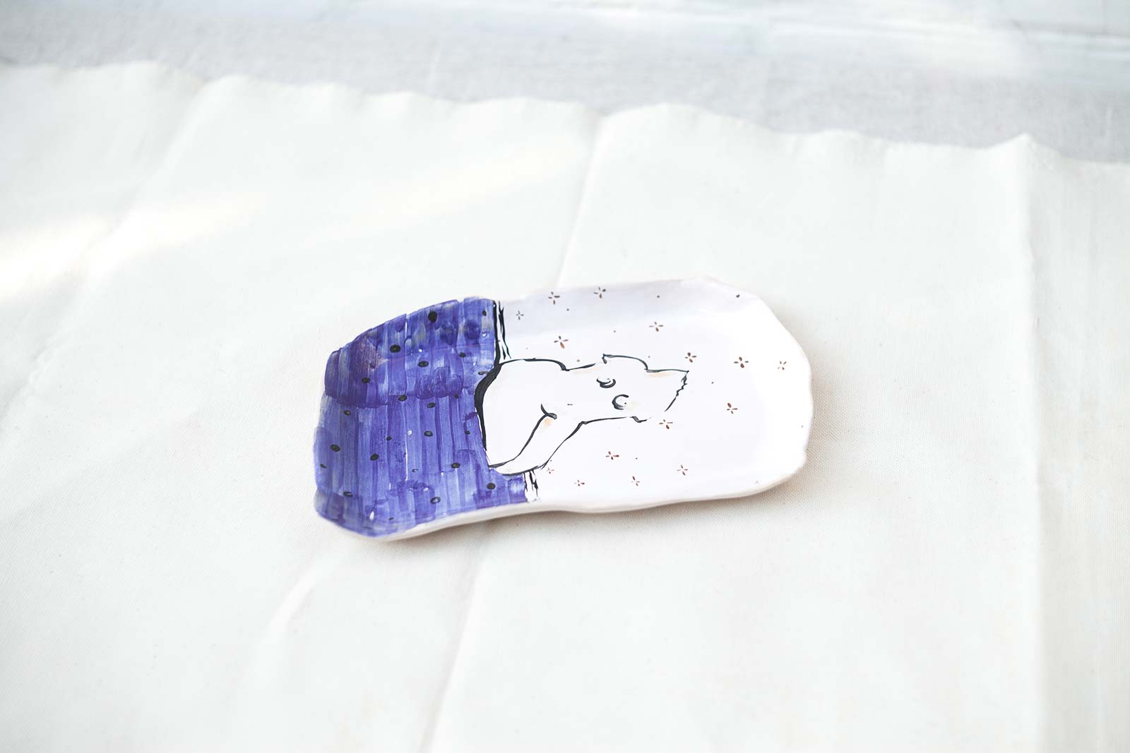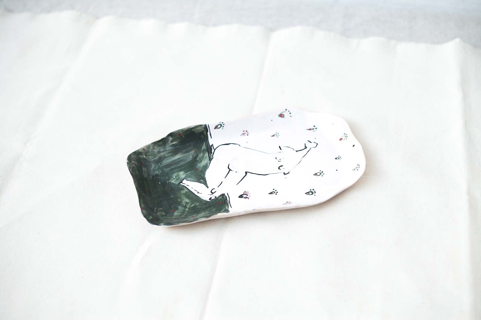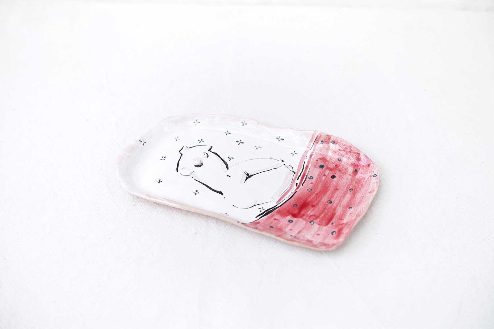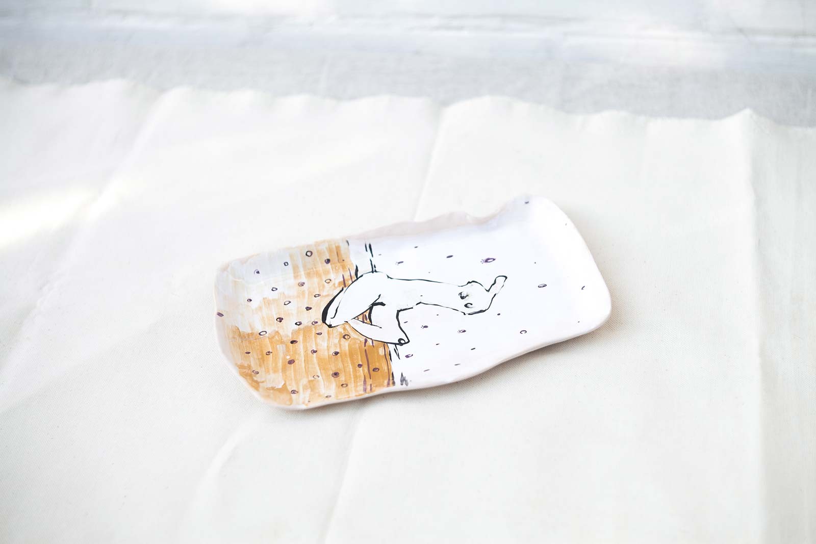 Прямокутні керамічні тарілки ручної роботи з серії «Оголені». Виліплені вручну з білої глини і декоровані підглазурним розписом. Стануть гарною прикрасою інтер’єру або чудовими тарілками для холодних закусок. Вироби можна мити в посудомийній машині і розігрівати в мікрохвильовій печі.