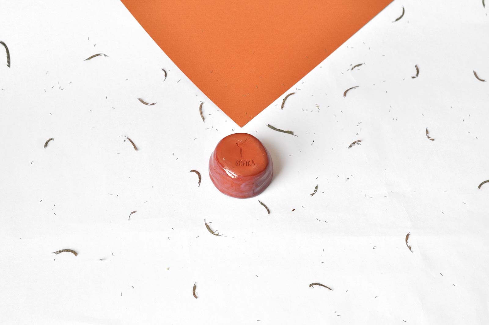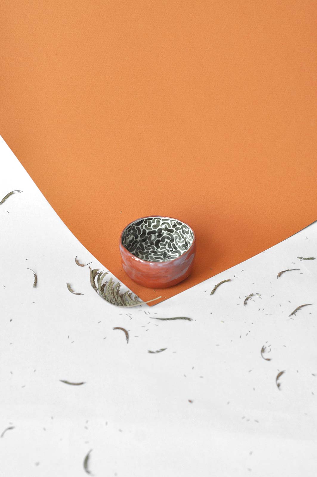 Маленька керамічна піала з колекції «Дежавю №2». Виліплені вручну з червоної глини і декоровані розписом всередині. Піалу можна використовувати для подачі горіхів і цукатів. Виріб можна мити в посудомийній машині і розігрівати в мікрохвильовій печі.