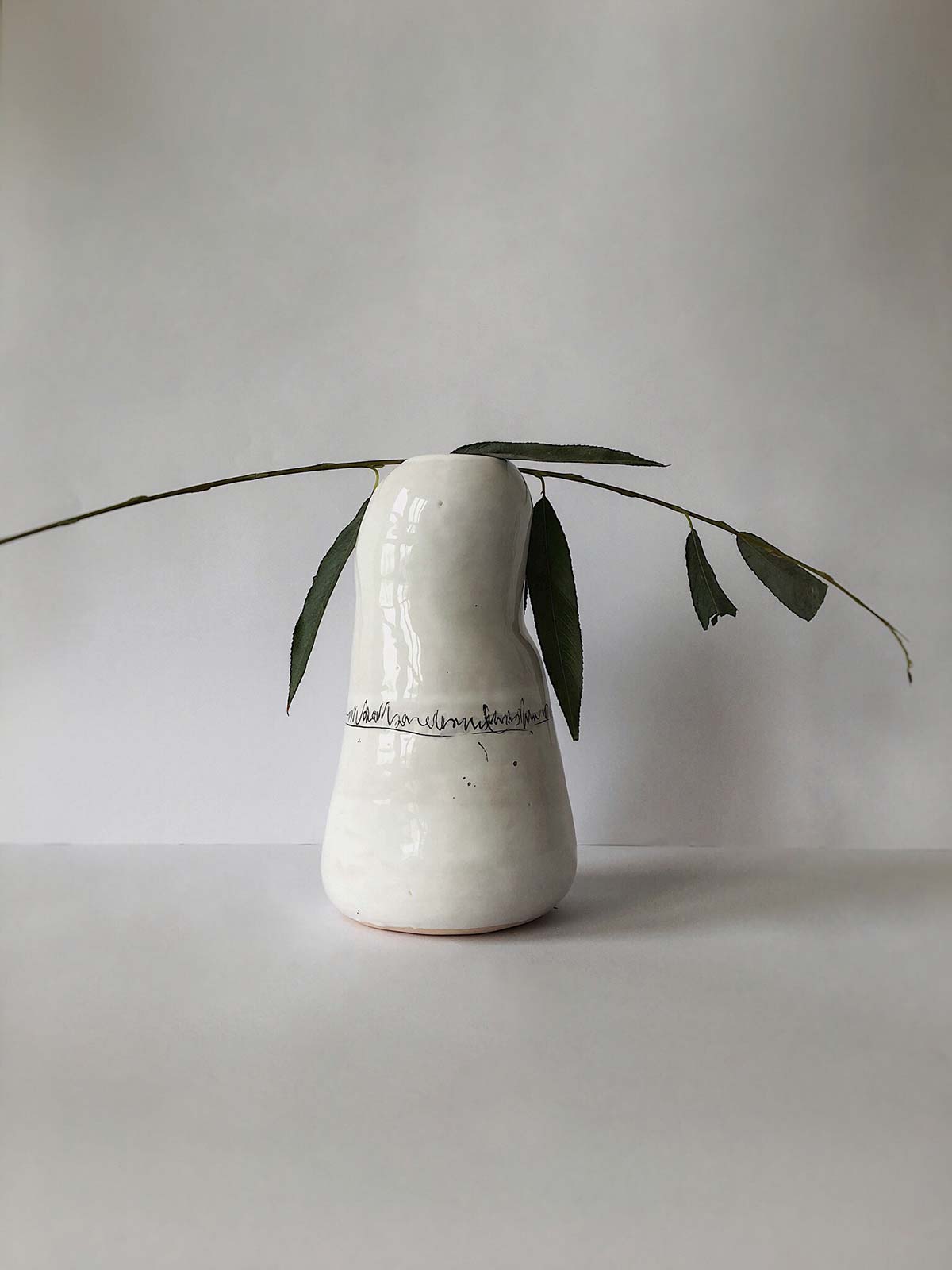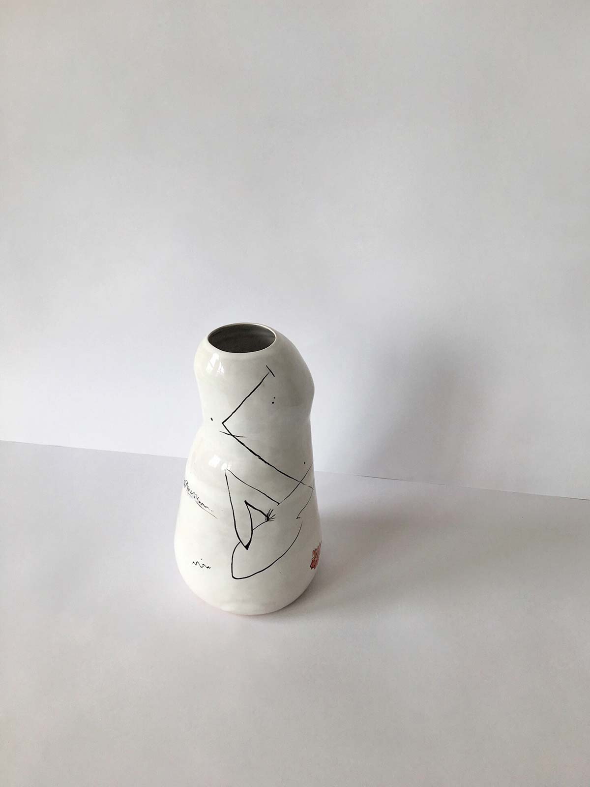 Ваза для квітів з жіночим силуетом. Виліплена вручну з білої глини і декорована підглазурним розписом. Можна використовувати як самостійний декор для прикраси інтер’єру або як вазу для квітів.